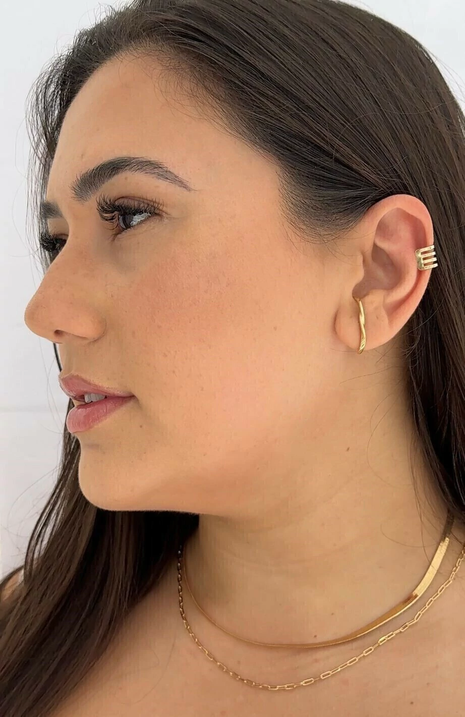 Brinco Ear Hook Gold - 28mm Apresentamos o Brinco Ear Hook Gold, uma peça que une elegância e conforto. Com um tamanho de 28mm, este brinco é projetado para abraçar todo o lóbulo da orelha, garantindo um encaixe perfeito.
