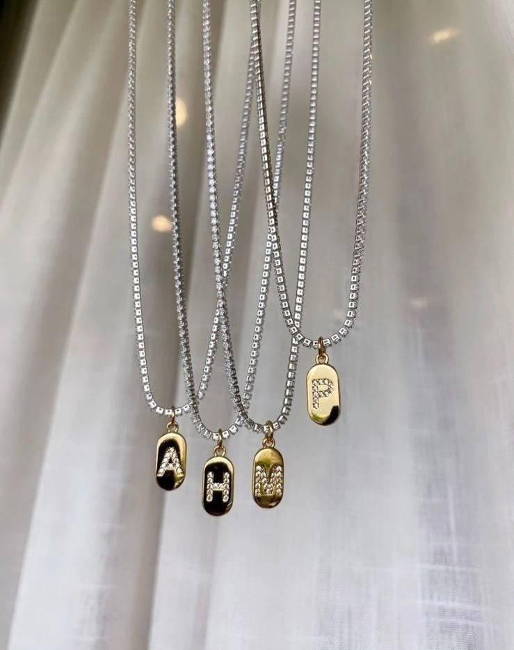 O Colar Riviera com Inicial é o seu novo melhor amigo fashion! Personalize seu look com um toque super exclusivo e cheio de charme. Feito para brilhar mais que seu sorriso, ele une elegância e aquela pitada de personalidade que só você tem. Perfeito para arrasar no dia a dia ou naquela festa que você só vai porque o colar manda! Invista em estilo com humor e muito brilho!